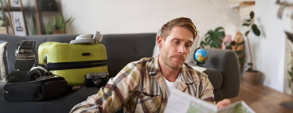 A 10,000–20,000 mAh bank balances weight and cost. Airplane mode, dim screens, and nightly top-ups stretch power. Share your daily screen time and we’ll suggest capacity targets that won’t bulk up your pack or receipts.